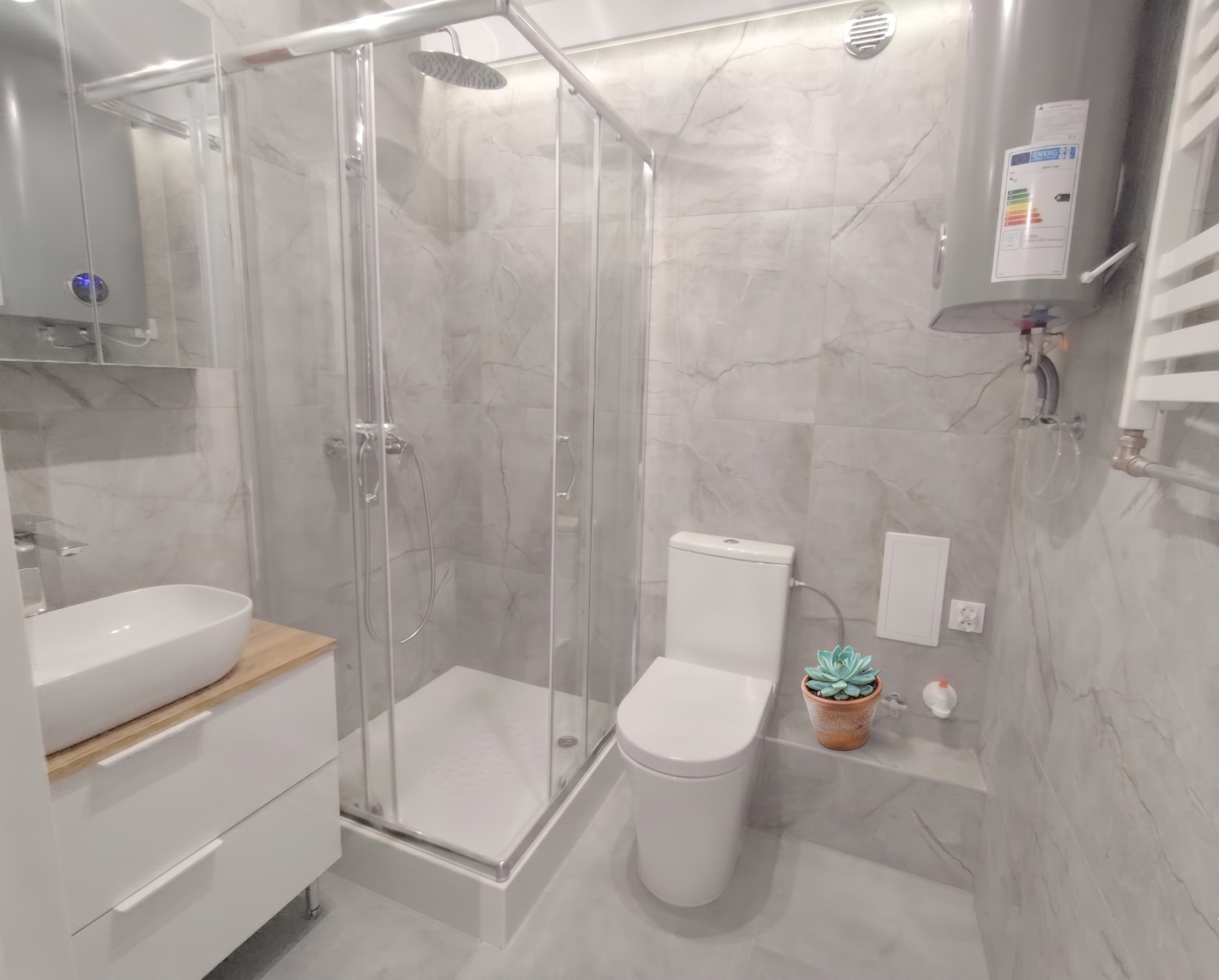 Media: Ogrzewanie miejskie (CO). Brak gazu w budynku (zwiększone bezpieczeństwo). Ciepła woda z bojlera.