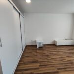 Pokój – ustawny, z dużą szafą w zabudowie, stolikiem i niską szafką RTV. Jasne ściany i podłoga w kolorze drewna tworzą przytulną przestrzeń.